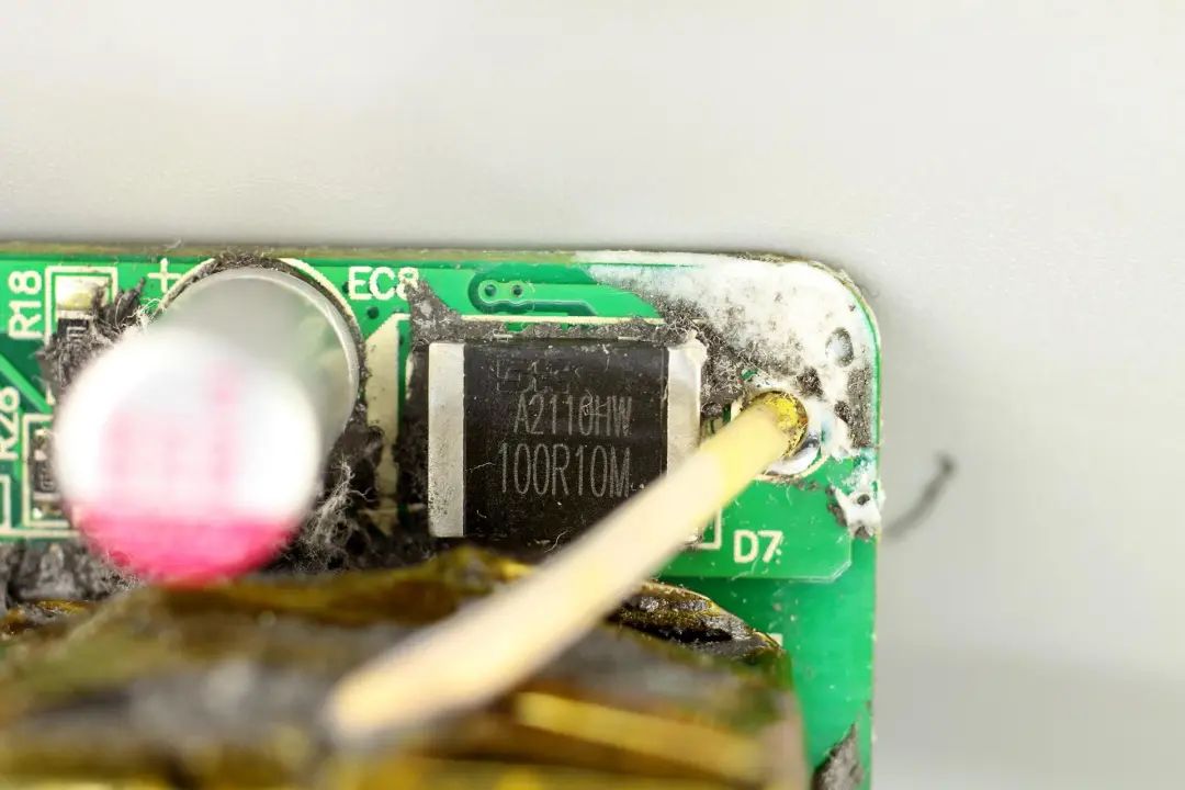 充電器內部PCBA模塊采用黃銅散熱片包裹,PCB正面打膠,背面有導熱墊,將熱量傳導至散熱片散發,滿足長時間大功率輸出設計。初級濾波電容來自黃寶石,次級固態濾波電容來自柏瑞凱,整機用料均為知名品牌。