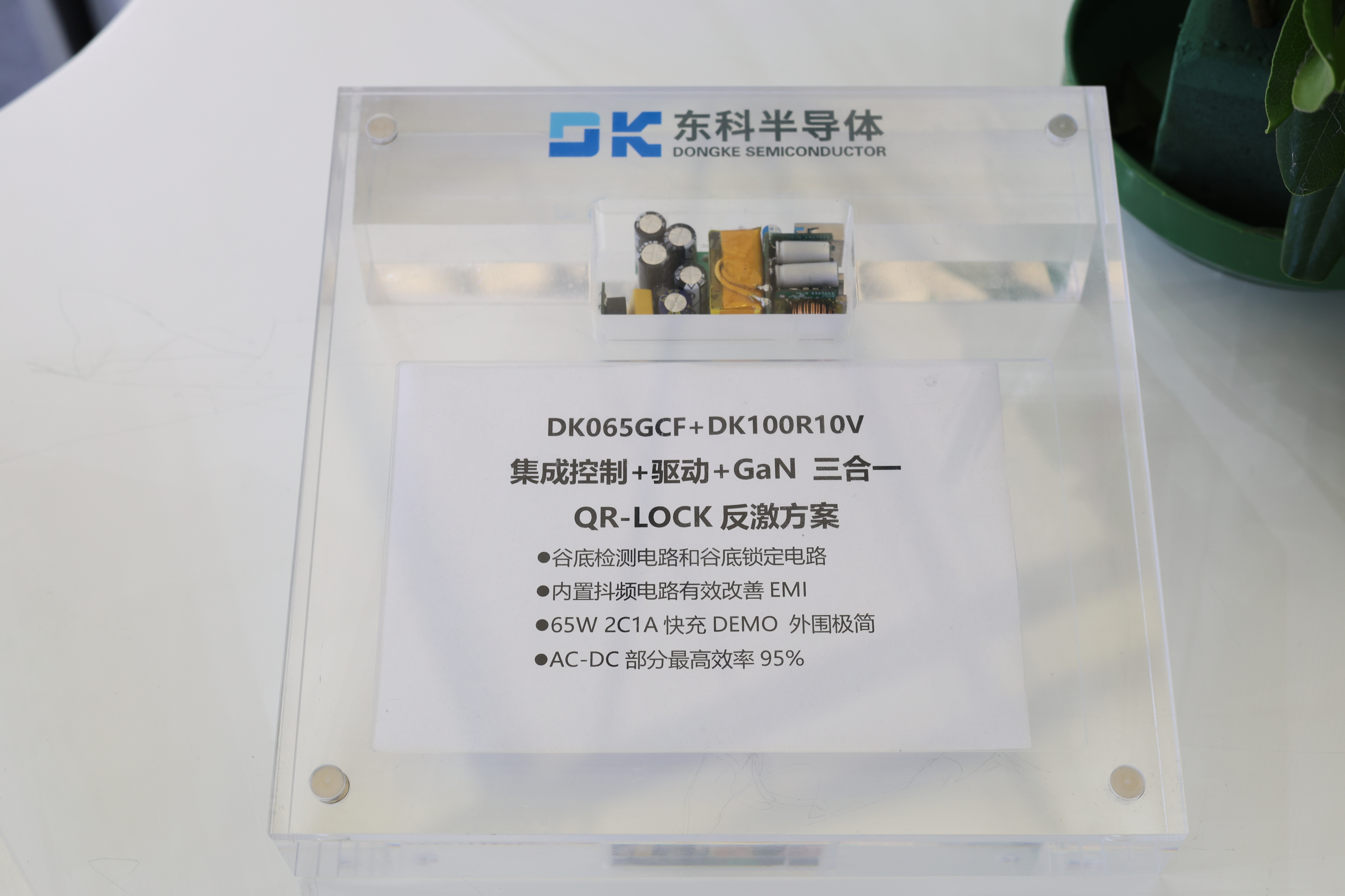 在氮化鎵AC-DC電源管理芯片領域,東科還帶來了全合封QR-LOCK AC-DC 電源管理芯片DK0XXG/DK80XXAP系列。產品輸出功率覆蓋12-75W。支持250KHz開關頻率,待機功耗低于50mW,內置高低壓輸入功率補償電路。